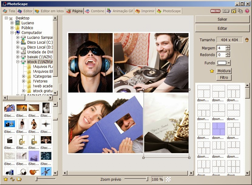 A ferramenta para página permite a você montar suas fotos no espaço de uma página, de acordo com dezenas de layouts prontos. Recurso perfeito para quem deseja imprimir coleções de imagens de uma forma diferente, aplicando diagramações como se estivesse preparando um trabalho profissional.