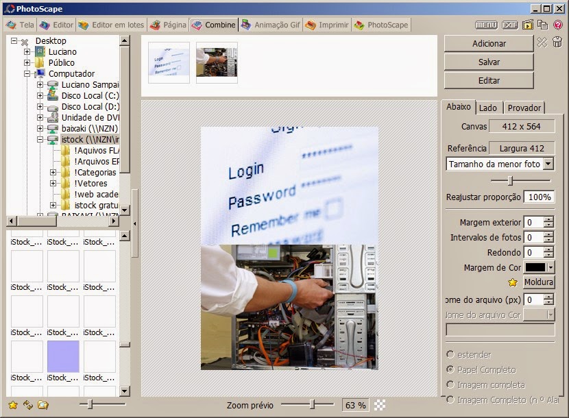 Combinando fotos, você une diversas imagens num único arquivo, como se estivesse colando uma à outra. Dessa forma, você dispõe de múltiplas imagens lado a lado, uma embaixo da outra ou como num quadro, unindo imagens para serem visualizadas de uma única vez e com muita praticidade.